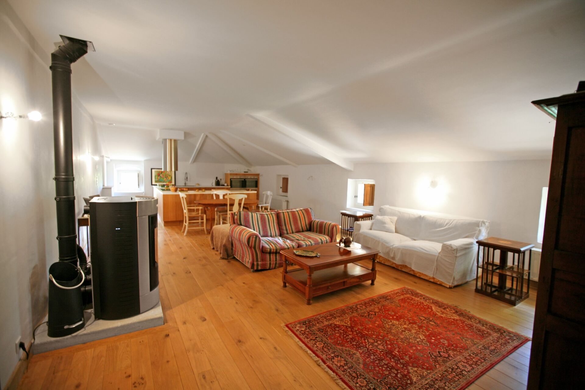 Au deuxième, on trouve un très grand appartement (occupe quasiment tout l’étage) avec une cuisine ouverte sur un large espace de vie, deux chambres, une salle d’eau et une salle de bains.