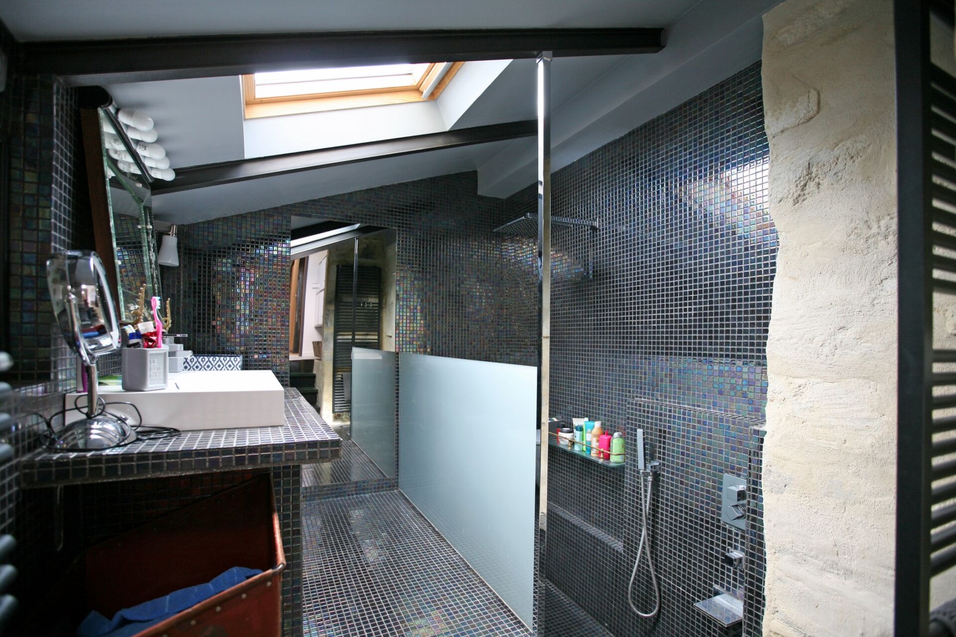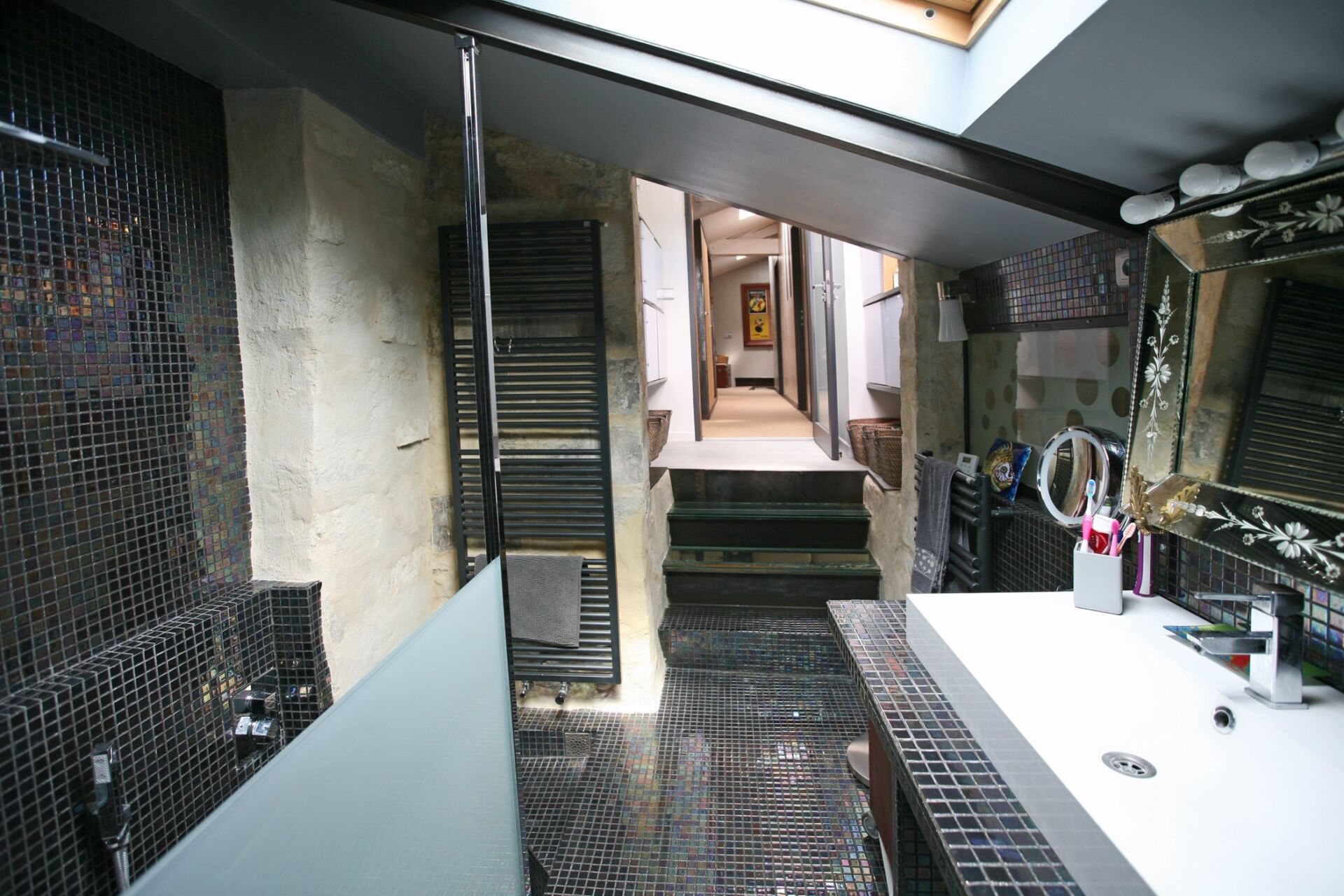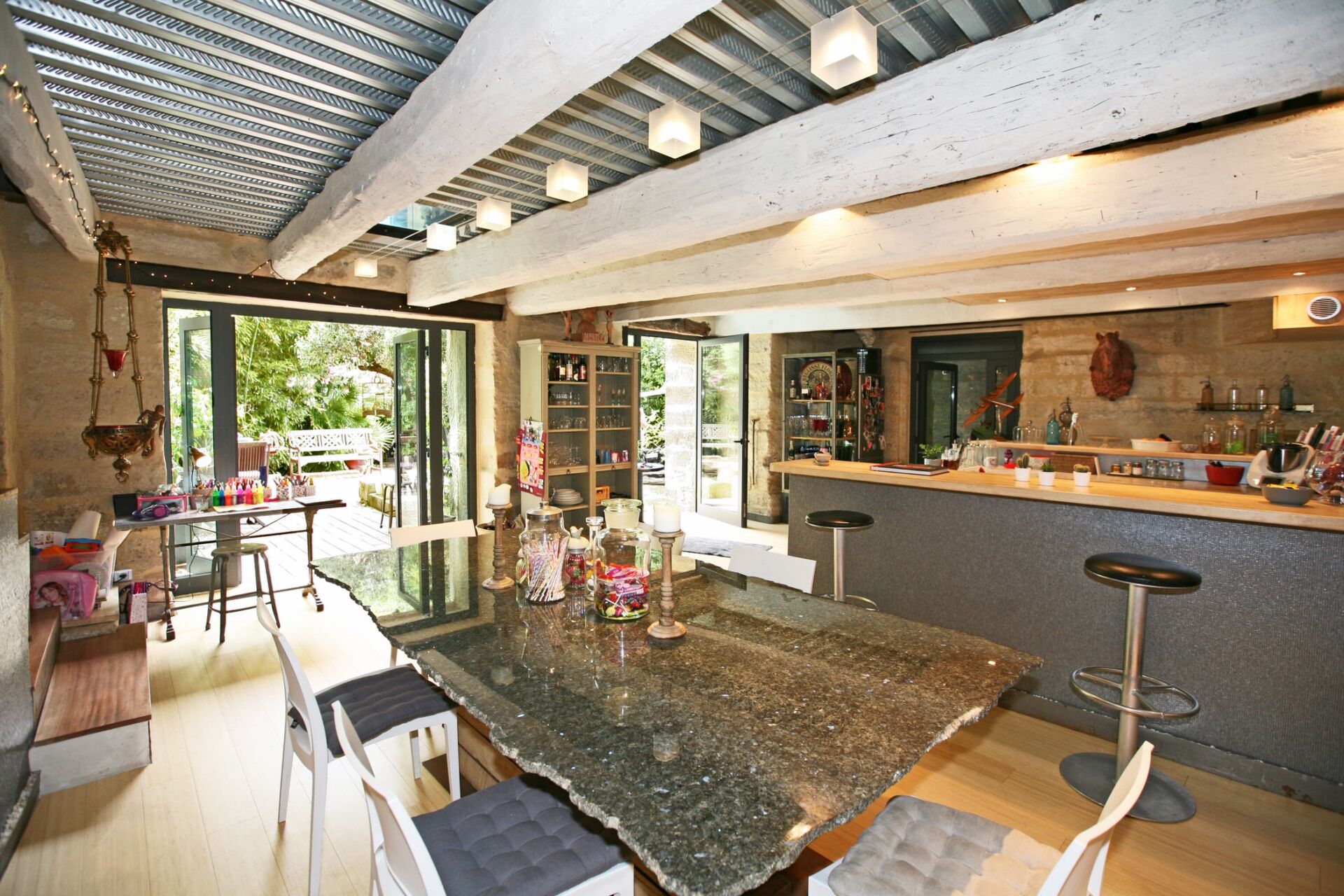 L’ensemble, plutôt atypique, est composé d’un mélange d’éléments anciens (pierre de taille) et d’éléments modernes (acier, verrières, etc.) qui devrait plaire aux amoureux des architectures mixtes.