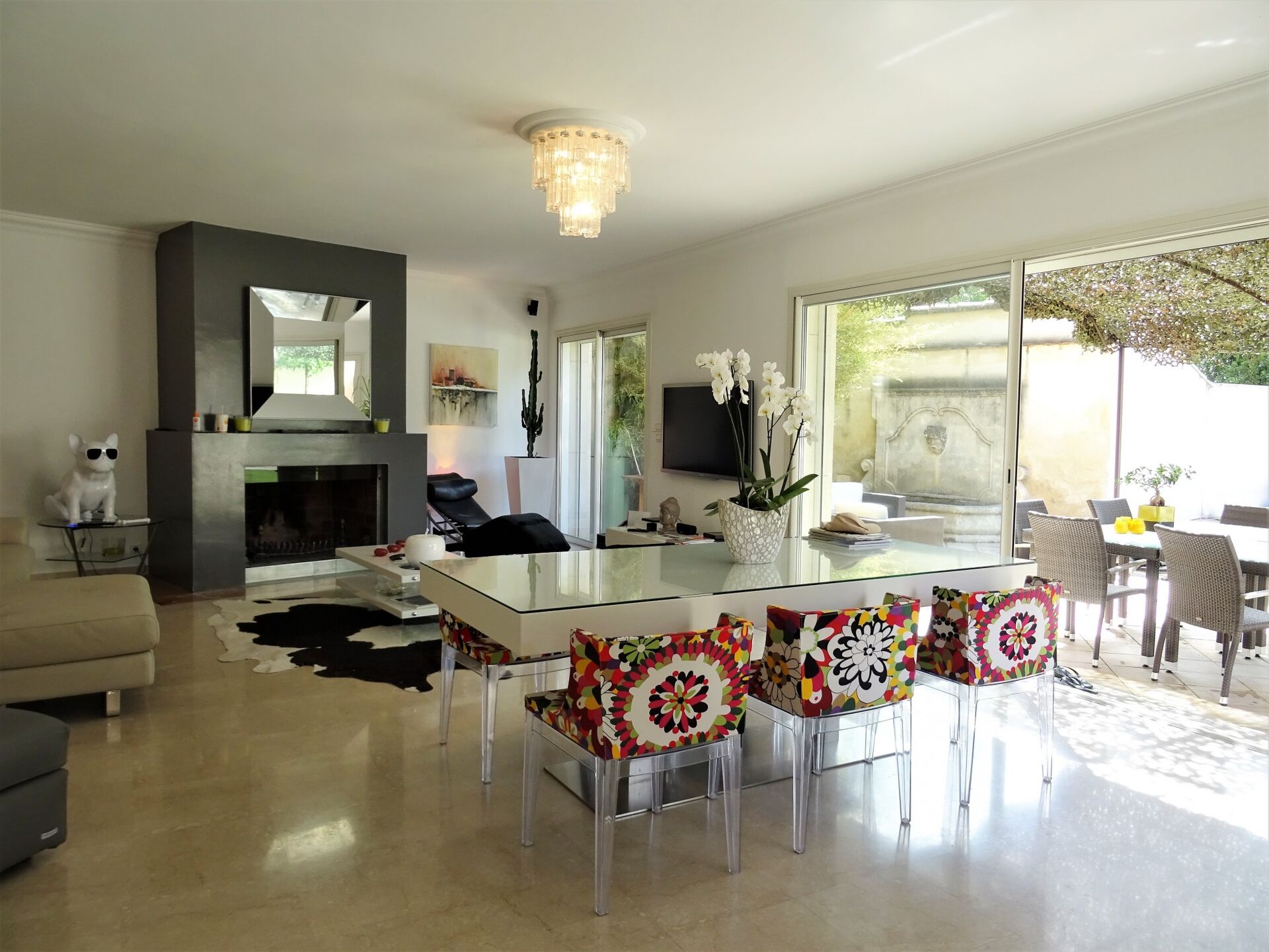 A l'extérieur, un coin salon devant une fontaine pleine de charme est disposé à côté du coin repas sous pergola en fer forgé qui donne sur le couloir de nage semi-enterré de 17 x 4 m, chauffé et au sel. A l'Ouest de la bâtisse principale, un accès par un portail conduit au garage fermé de 2 places (environ 40 m²) et au garage à vélos (12 m²). En continuité donnant côté jardin : le pool house avec douche puis le local technique. Au 1er niveau de cet ensemble construit en 2000, vous accédez par un charmant escalier en colimaçon à l'appartement d'amis d'environ 35 m² avec un salon, une chambre et une salle d'eau et son wc. Un puits, un olivier, des bambous et un gazon très "green" complètent le décor. Des prestations très qualitatives tant du point de vue des matériaux que des éléments de confort devraient vous combler.