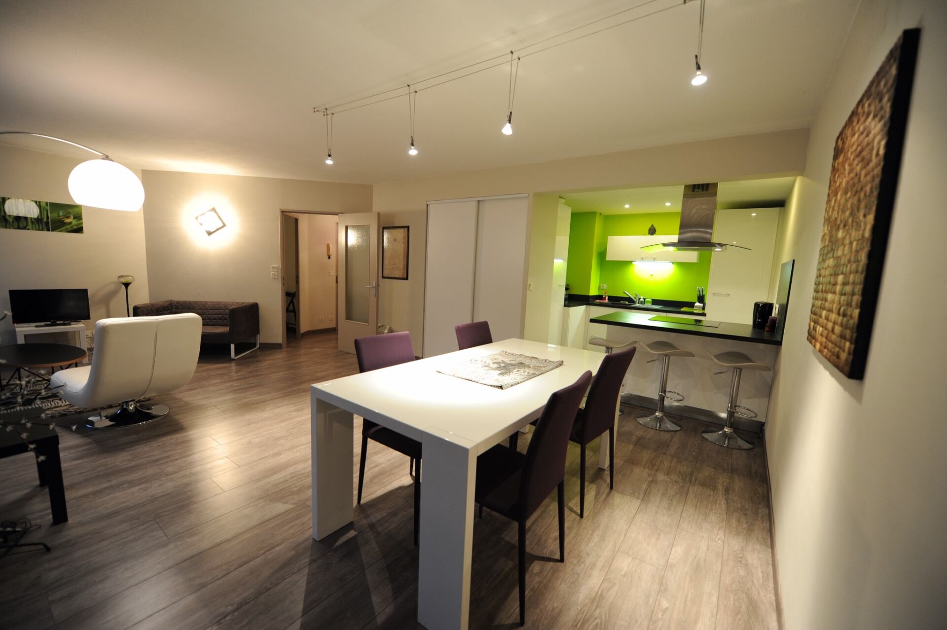 Au second niveau d'un immeuble de quatre étages, avec ascenseur, un bel appartement meublé lumineux d’environ 60 m² avec un garage fermé, rénové récemment avec beaucoup d’espace et des rangements dans un quartier calme d'Avignon, proche des remparts et à proximité de toutes commodités.