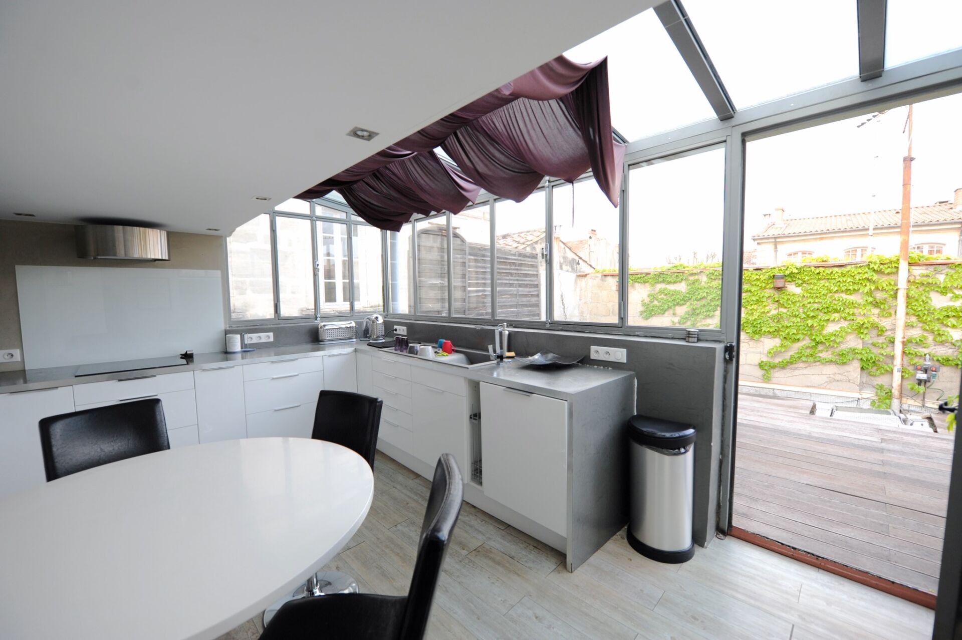 Le 2ème étage propose une cuisine équipée d'environ 15 m² sous verrière qui s'ouvre sur le toit terrasse de près de 20 m² agrémenté çà et là de vigne vierge vous isolant des regards indiscrets.