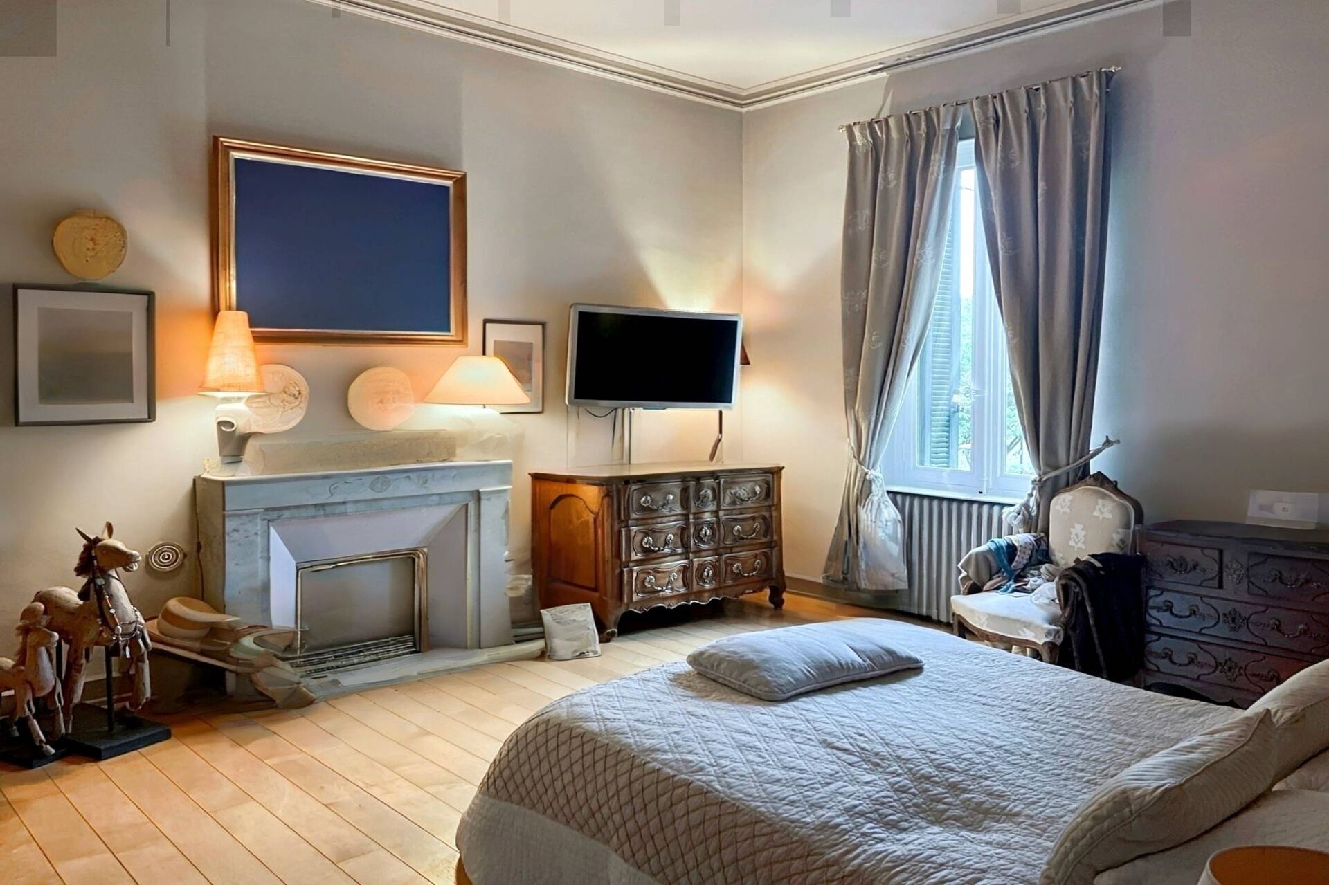Prestations : chauffage central gaz, eau de ville, tout-à-l'égout, climatisation réversible, cheminées, alarme, piscine, caves, parking.