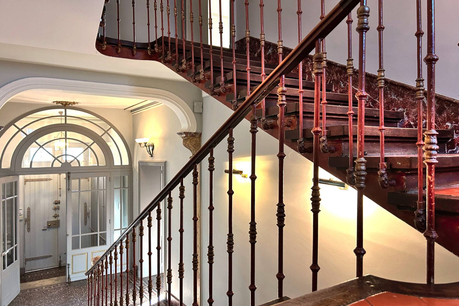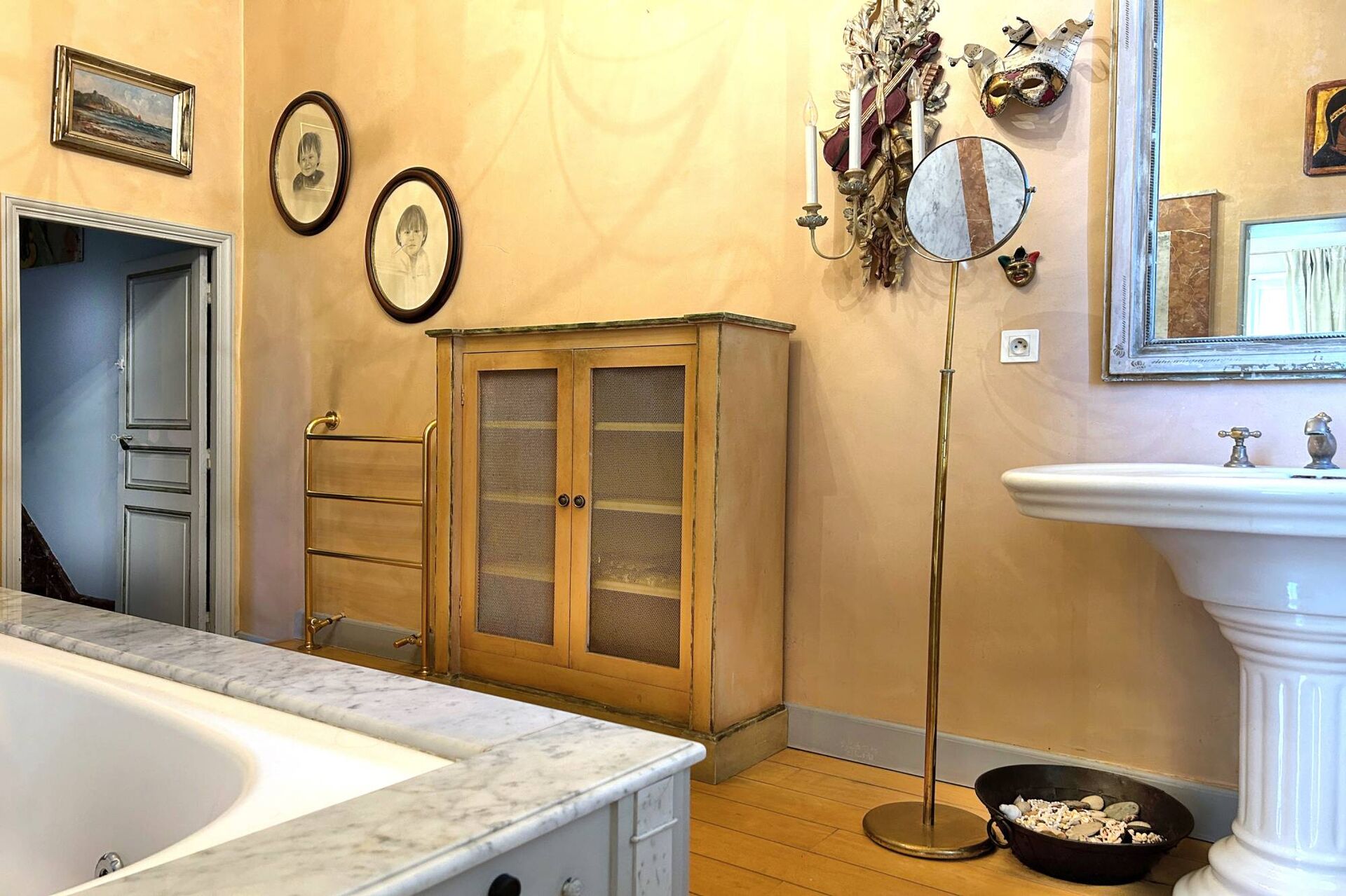 Dès l'entrée, vous serez subjugué par le hall, qui donne le ton de la sophistication qui règne dans cette demeure ; agrémenté d'une verrière cintrée et d'un superbe escalier en tomettes, les volumes sont impressionnants, la perspective des niveaux supérieurs est hors du commun.