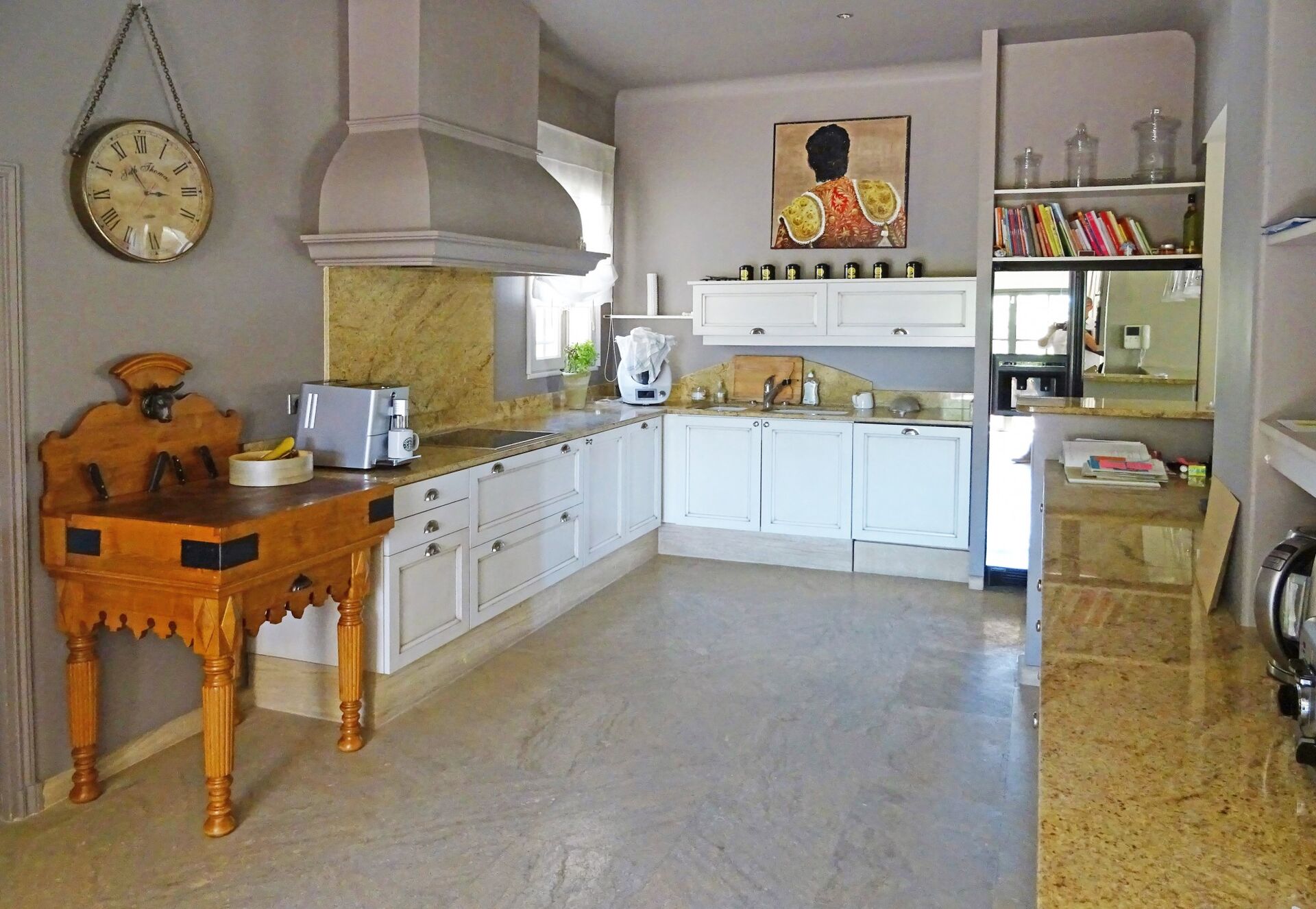 On entre dans un hall ouvrant sur de très généreuses pièces de réception, tel le grand séjour avec cheminée et son coin salon de lecture, un bureau, un 2ème salon avec coin bar, et une cuisine semi ouverte équipée à vivre et son coin repas qui ouvre sur une terrasse. Au nord, une belle arrière cuisine avec buanderie rejoignent le double garage. Au Sud, une pièce dédiée à la gym, un bureau et la chambre I principale avec sa salle d'eau et ses placards. Devant la maison se trouve une grande terrasse dallée.