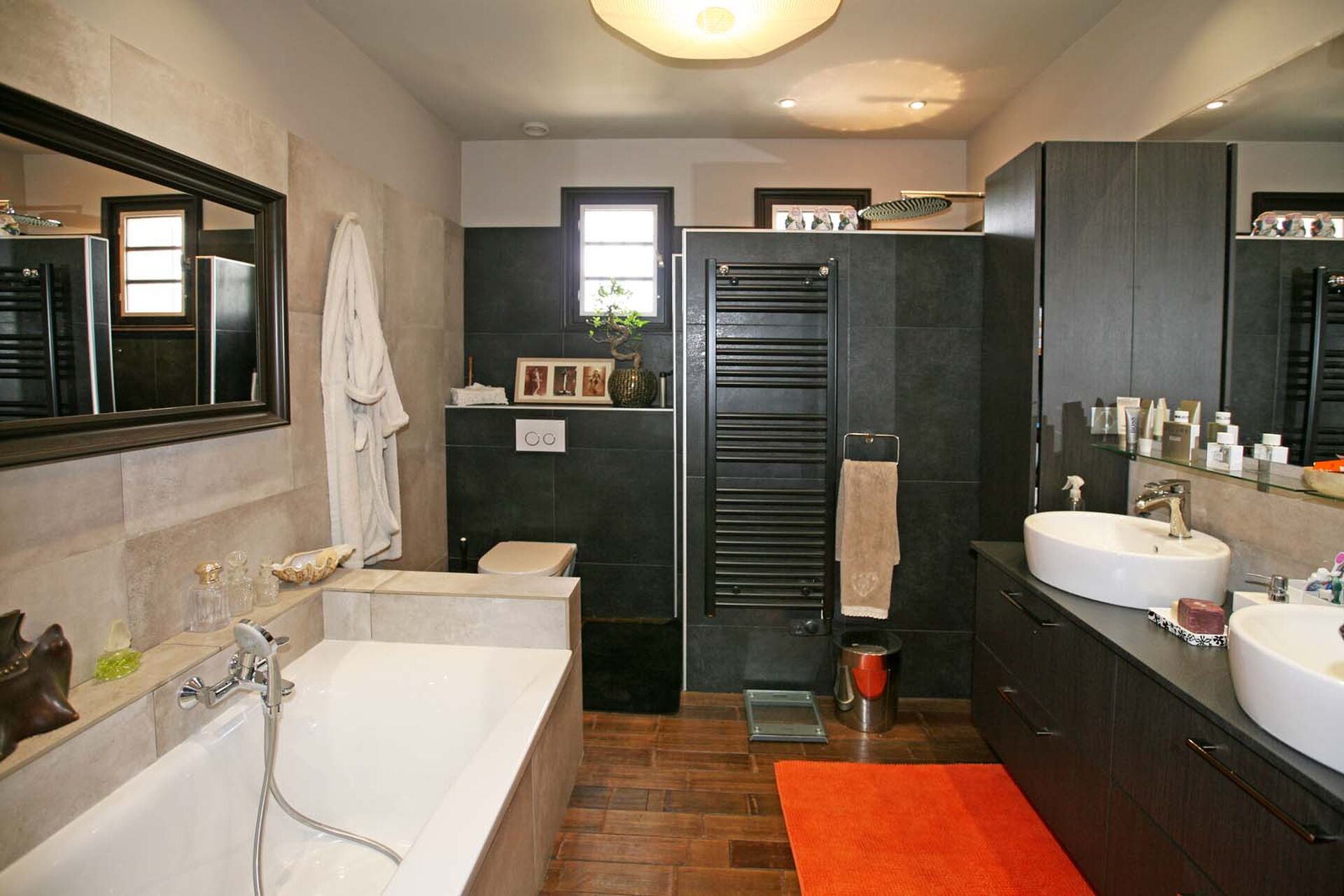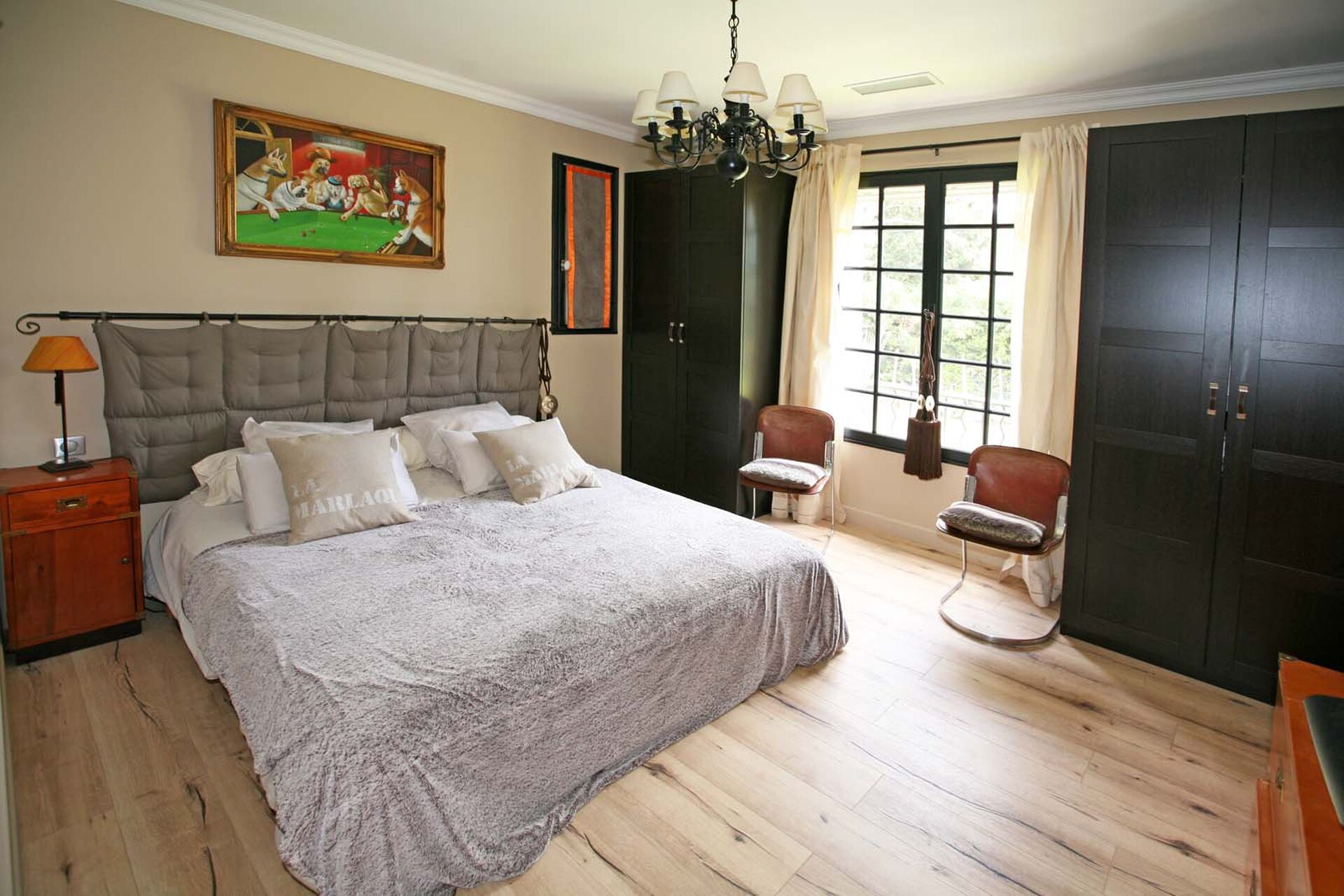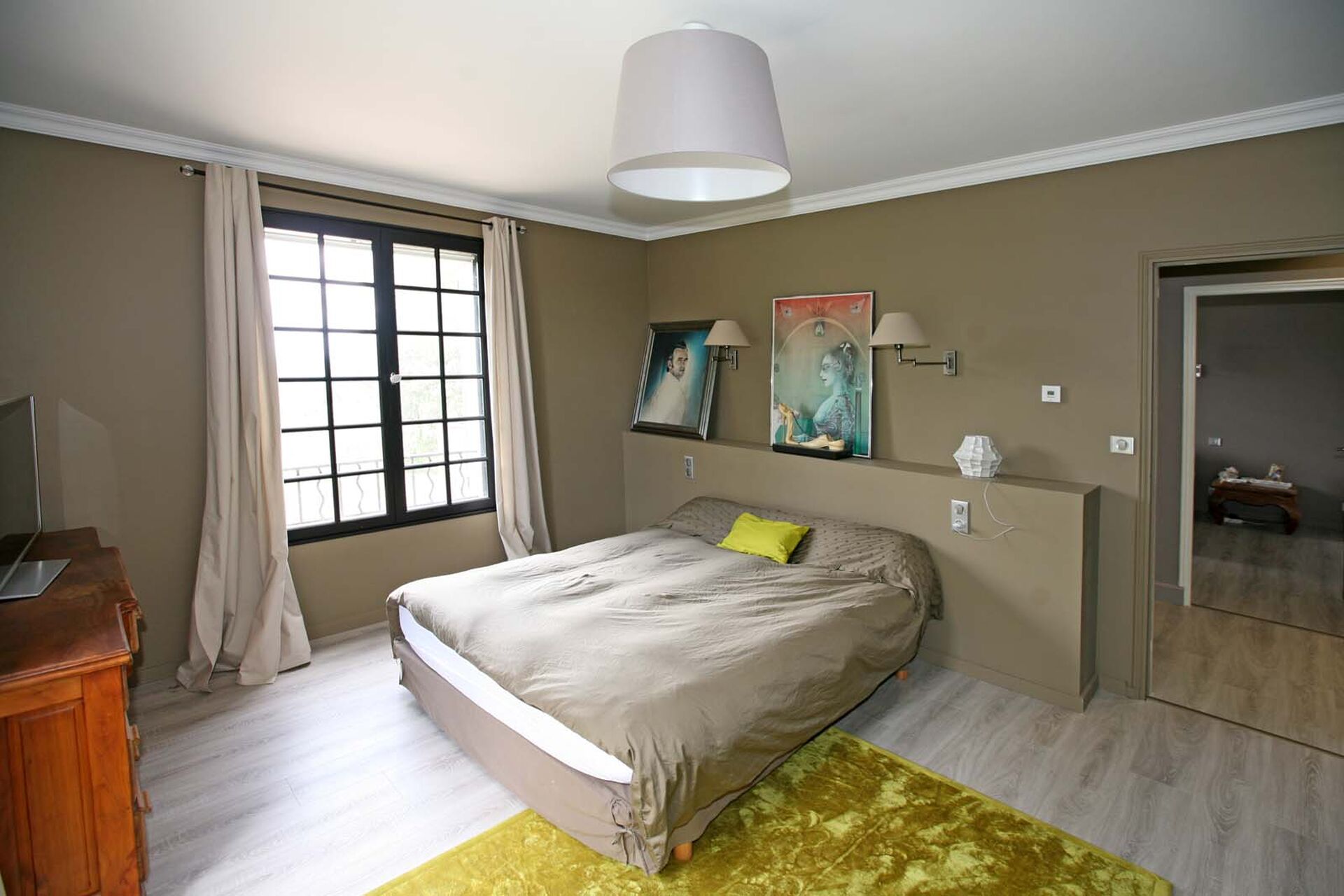 Sur l’arrière un dégagement distribue le coin nuit. La chambre I avec salle d'eau, un wc visiteur, et un petit escalier qui amène en demi-niveau vers la chambre II avec salle de bains et la suite principale comprenant une belle chambre, un dressing et une salle de bains.