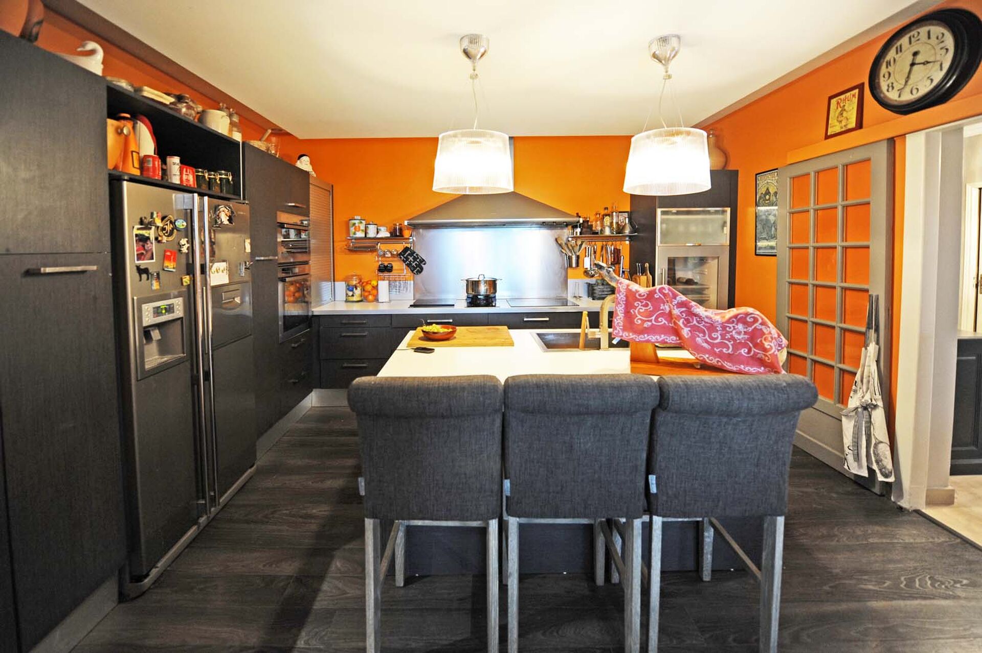 Un escalier derrière la cuisine permet de descendre d’un demi-niveau vers la chambre IV et sa salle de bains, le garage et la buanderie.