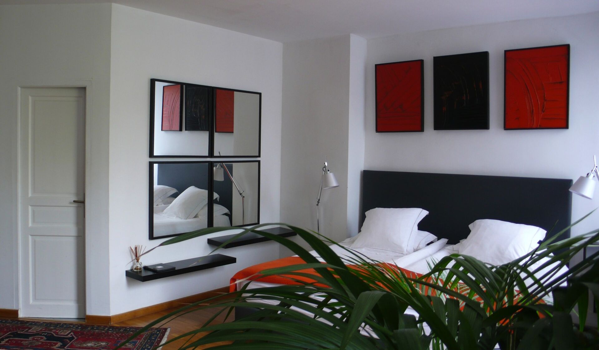 Au premier étage un petit appartement indépendant avec sa cuisine ouverte, son salon, son coin nuit et une salle de bain. De l'autre côté du palier une suite comprenant deux chambres et une salle d'eau.