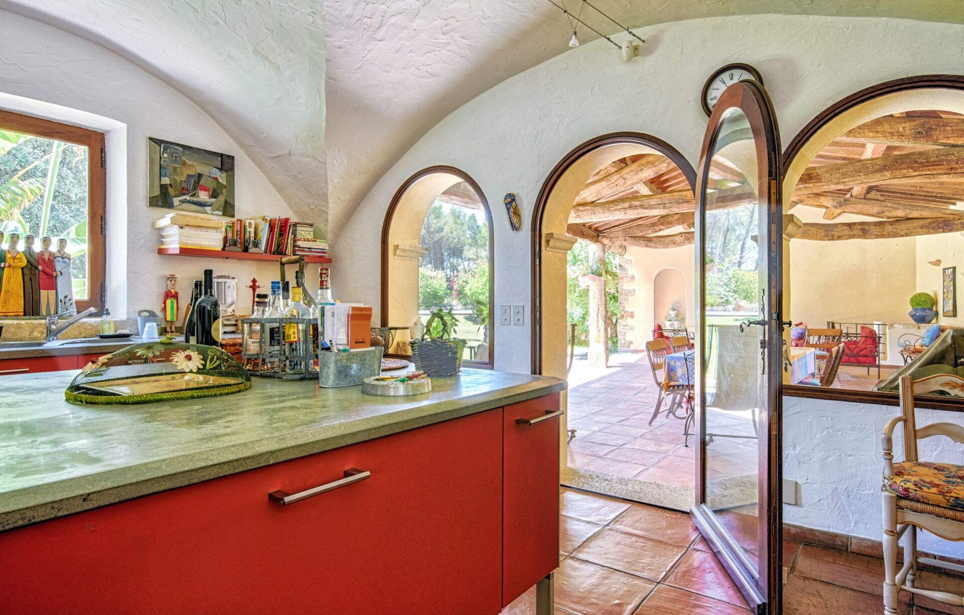 Cette classique construction Provençale des années 90, avec d'authentiques matériaux de récupération, quelques façades et encadrements en pierres, poutres anciennes, etc. offre environ 520 m² de surface utilisable.