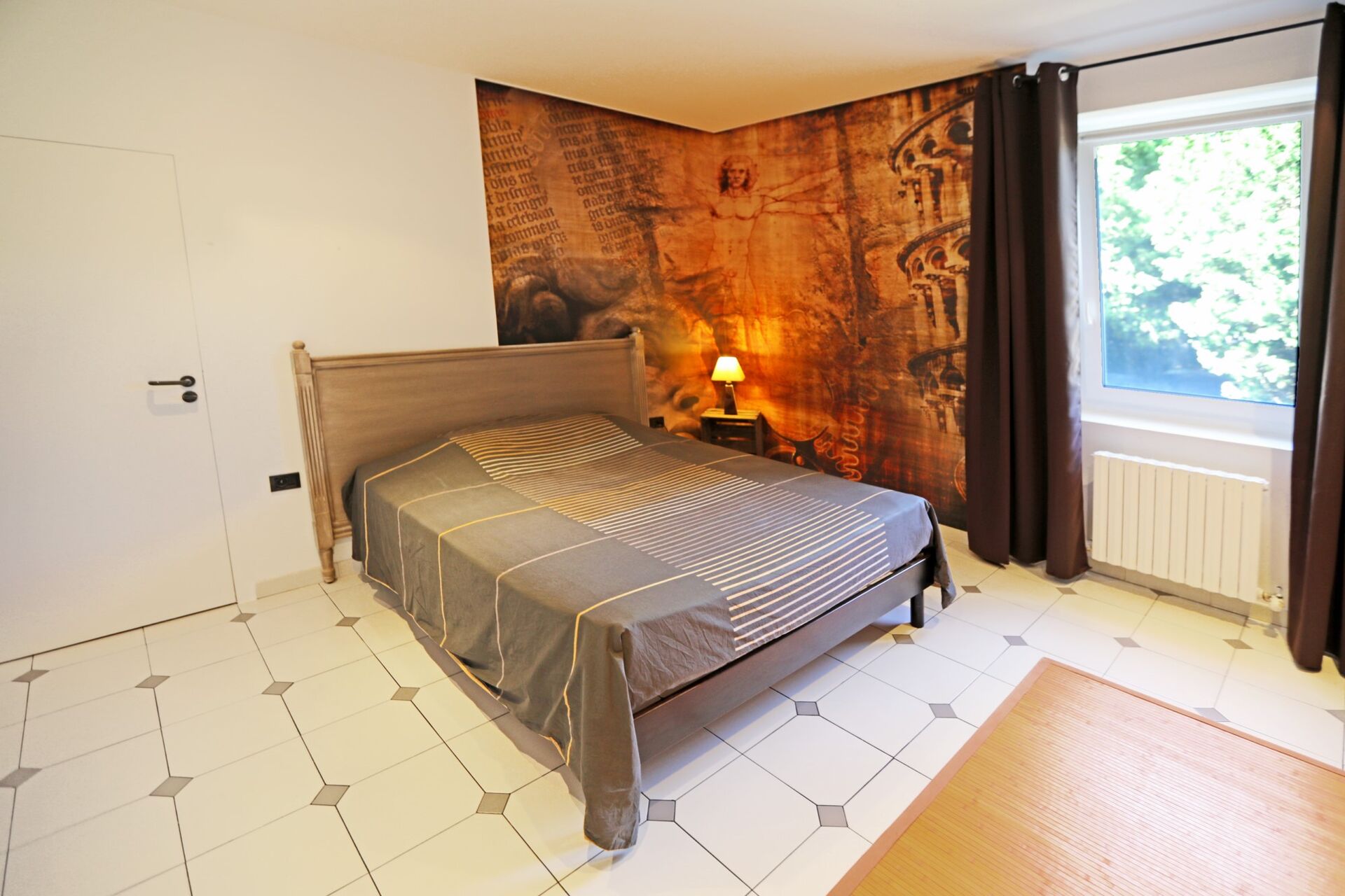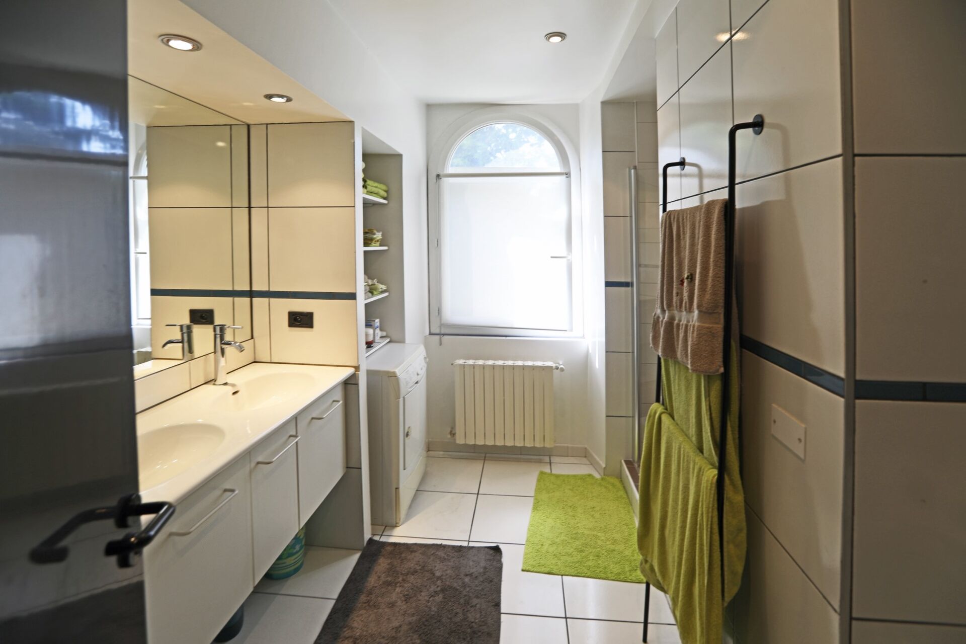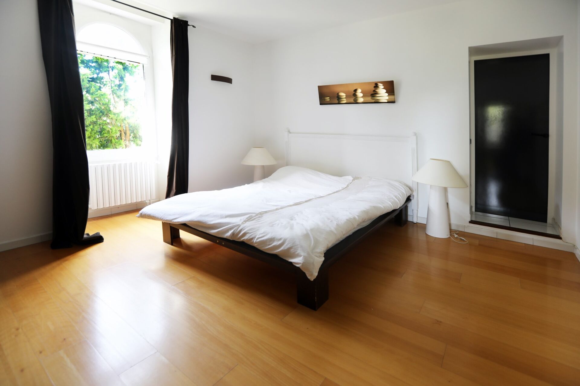 Le rez-de-jardin comporte un très grand garage, ainsi que plusieurs caves, chaudière et espaces de stockage. A noter, de nombreux escaliers dont un escalier central (en tommettes anciennes) couvrant les trois niveaux supérieurs. Aussi, une cage d’ascenseur actuellement sans cabine.